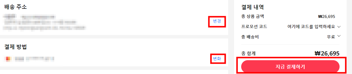 지금 결제하기 위에 '코드를 입력하세요'를 누르면 할인을 받을 수 있습니다. 프로모션코드는 월초에 선착순으로 발급되니까 확인해 보시기 바랍니다.